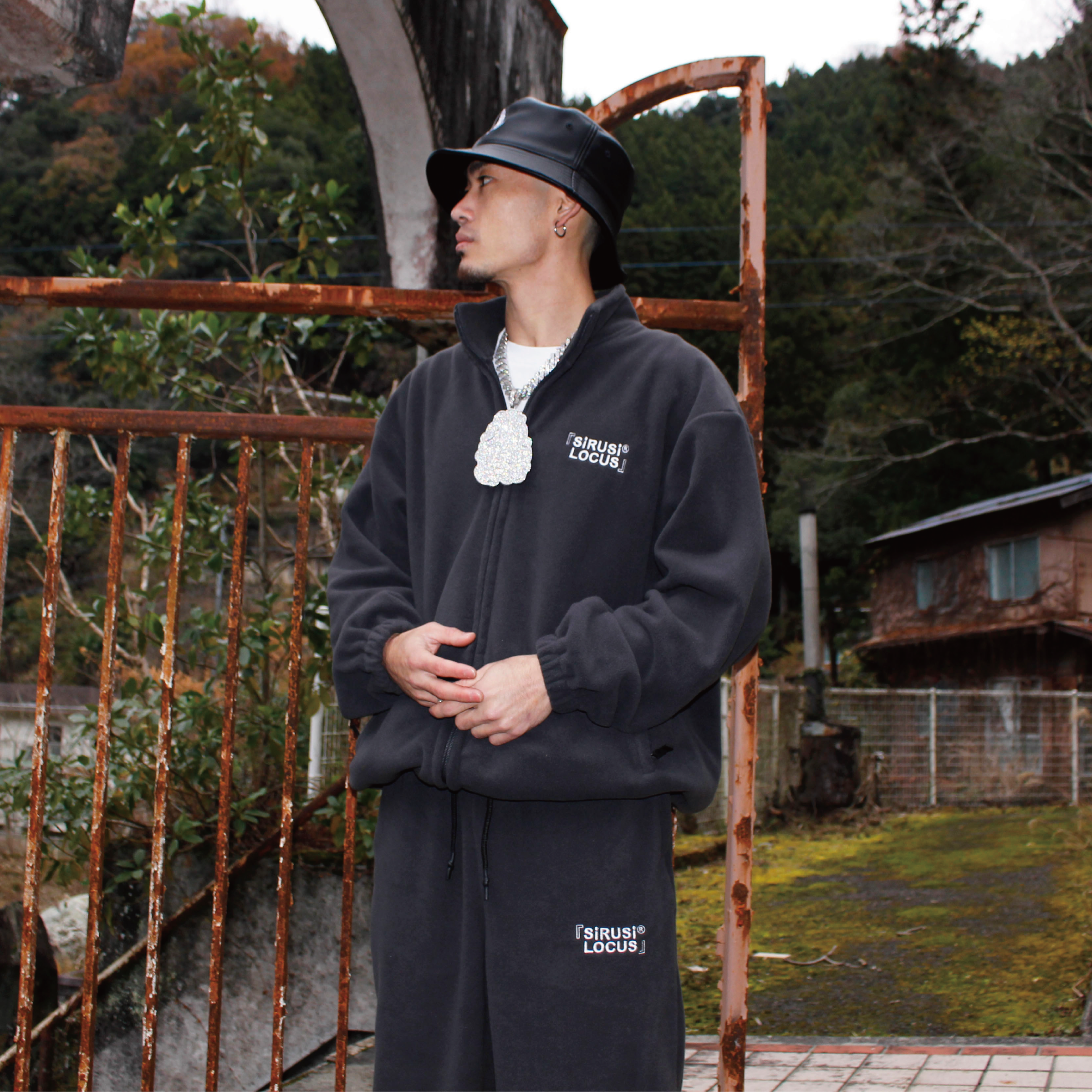 『SIRUSI SIMON LOGO FLEECE PANTS』とのセットアップでコーディネートを組むことが可能です。