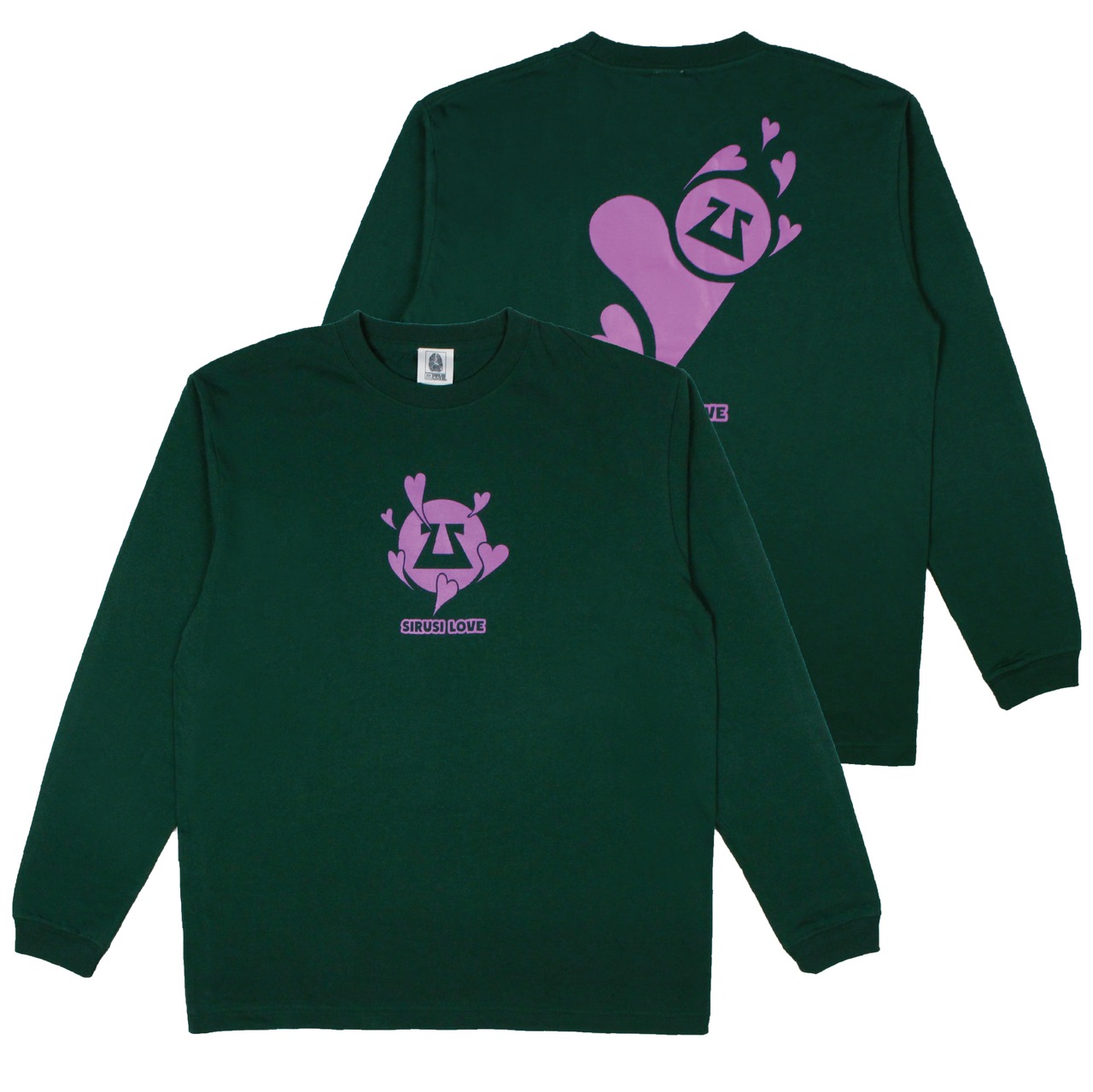フロントとバックにSIRUSIのロゴと沢山のハートがプリントされており、かなりキュートな一枚に仕上がっております。